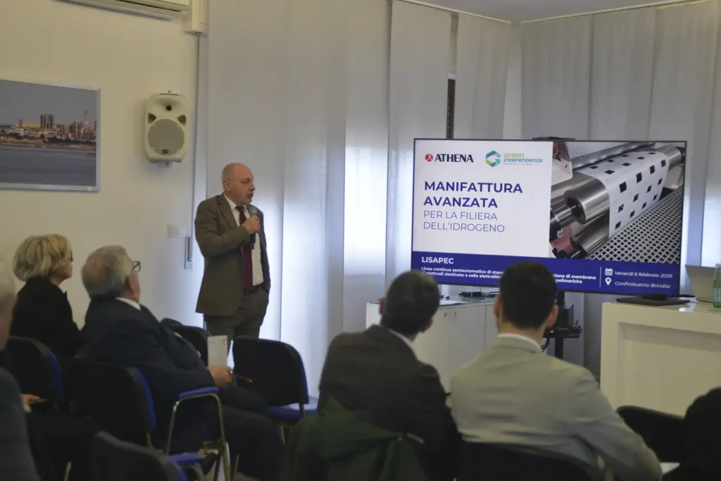Nel corso dell’evento di presentazione, ospitato da Confindustria Brindisi, imprese e istituzioni hanno discusso come la manifattura avanzata possa abilitare filiere dell’idrogeno realmente operative e generare valore industriale e occupazionale sul territorio. Il giorno precedente, una delegazione ha visitato lo stabilimento Athena di Erchie (BR), dove la linea prototipale è già in funzione, offrendo una dimostrazione concreta delle potenzialità del progetto.